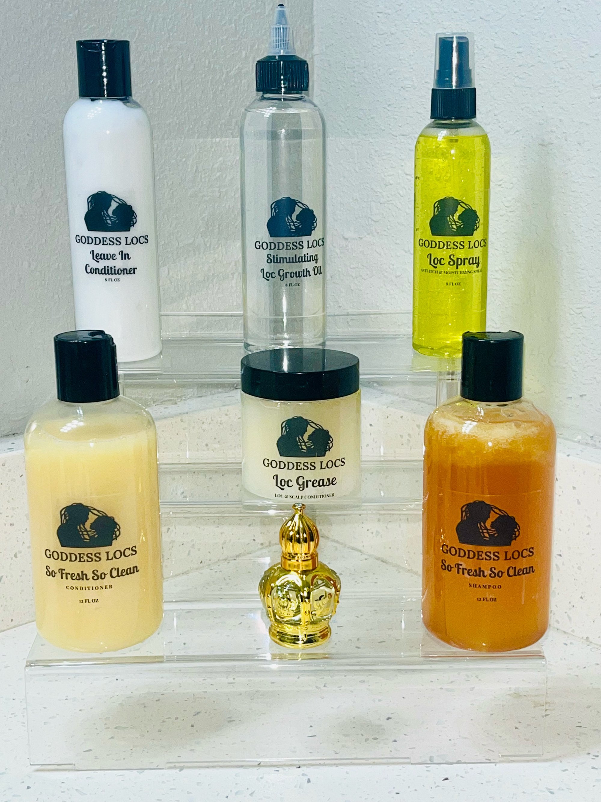 Inspired by timeless rituals of self-care and the regal energy of feminine power, Goddess Locs transforms everyday maintenance into a luxurious, sensory experience. From our deeply restorative serums to our aromatic conditioning treatments, each product is created to elevate your crown with the sophistication, shine, and vitality worthy of a goddess.